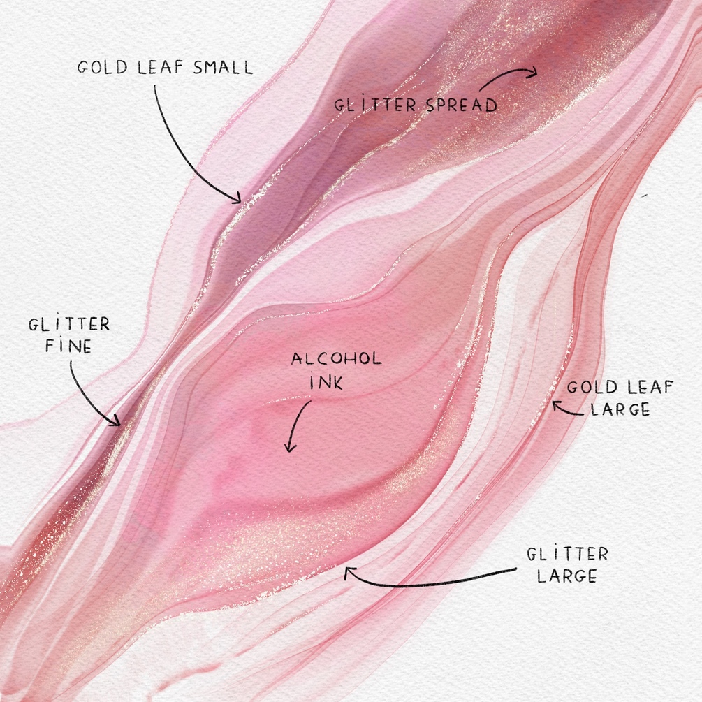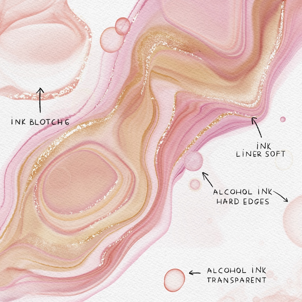 - Ink Texture: These eight brushes quickly create fun alcohol ink textures.
