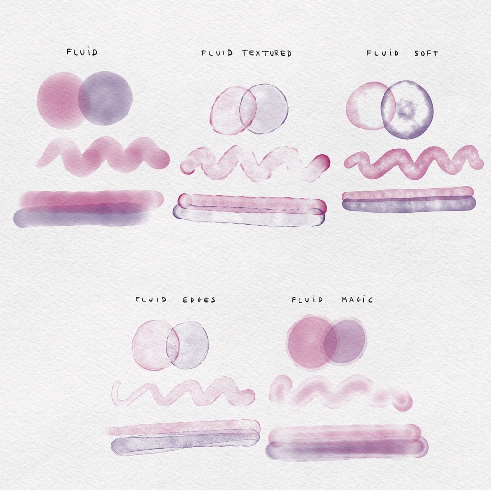 - Alcohol Ink: These five brushes have been designed to be used as the main multi-purpose brushes. You will find different brushes depending on the smoothness of the edges, transparency and ease of blending.