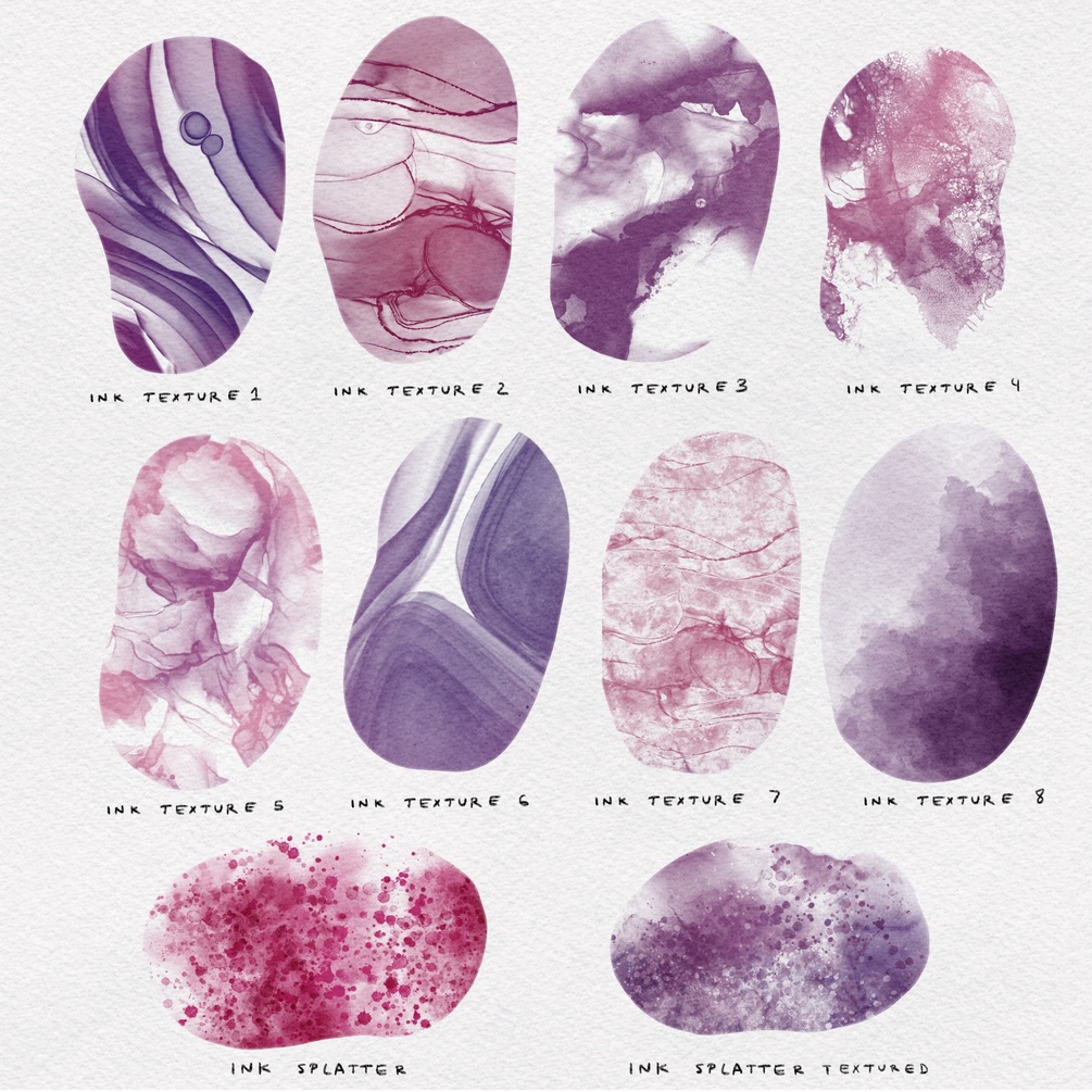 - Ink Texture: These eight brushes quickly create fun alcohol ink textures.