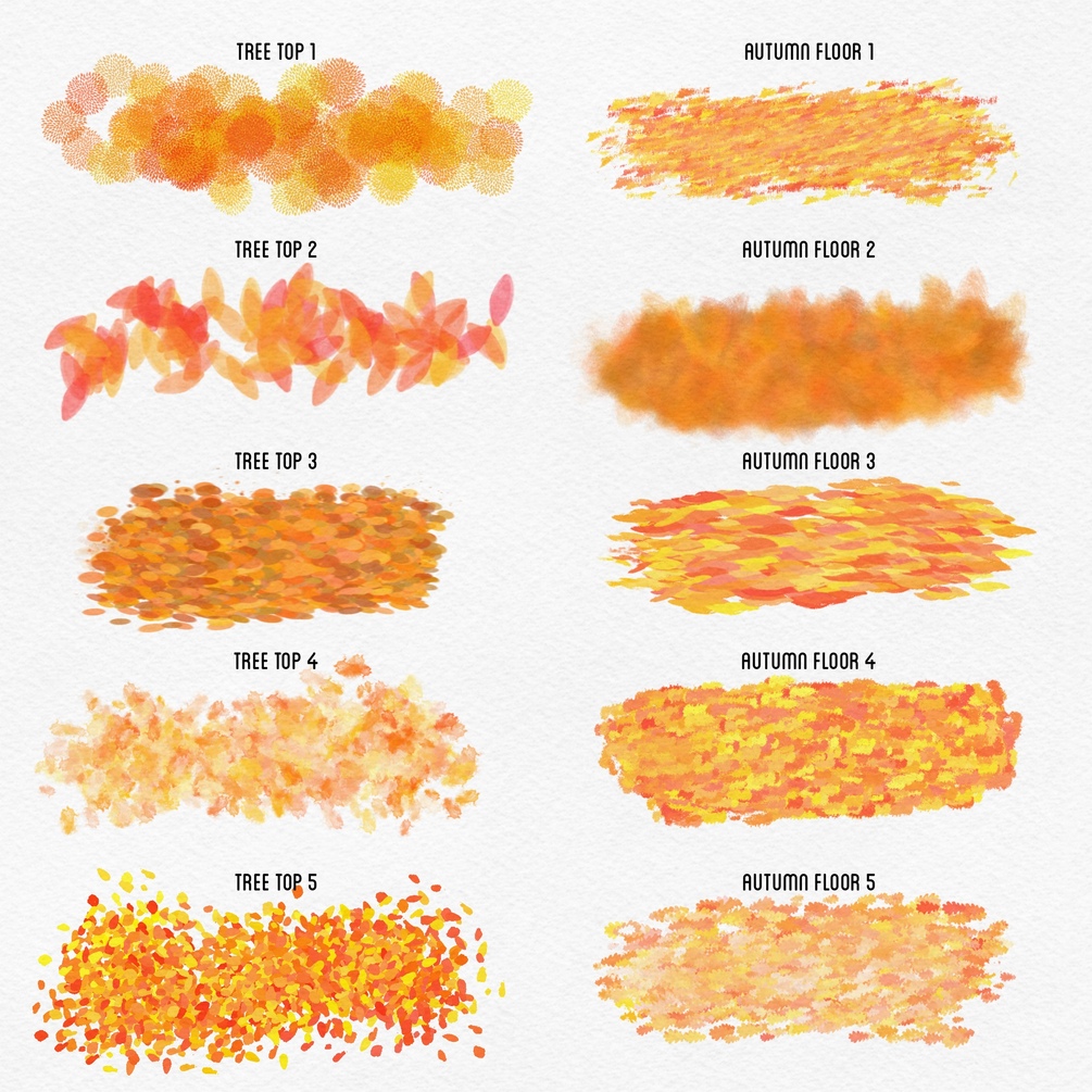 - Autumn Paint: These ten brushes are a mix of different styles, textures and effects that you can add to your illustrations. Despite all the brushes being different, the main characteristic they share is that the colour varies in different tones
